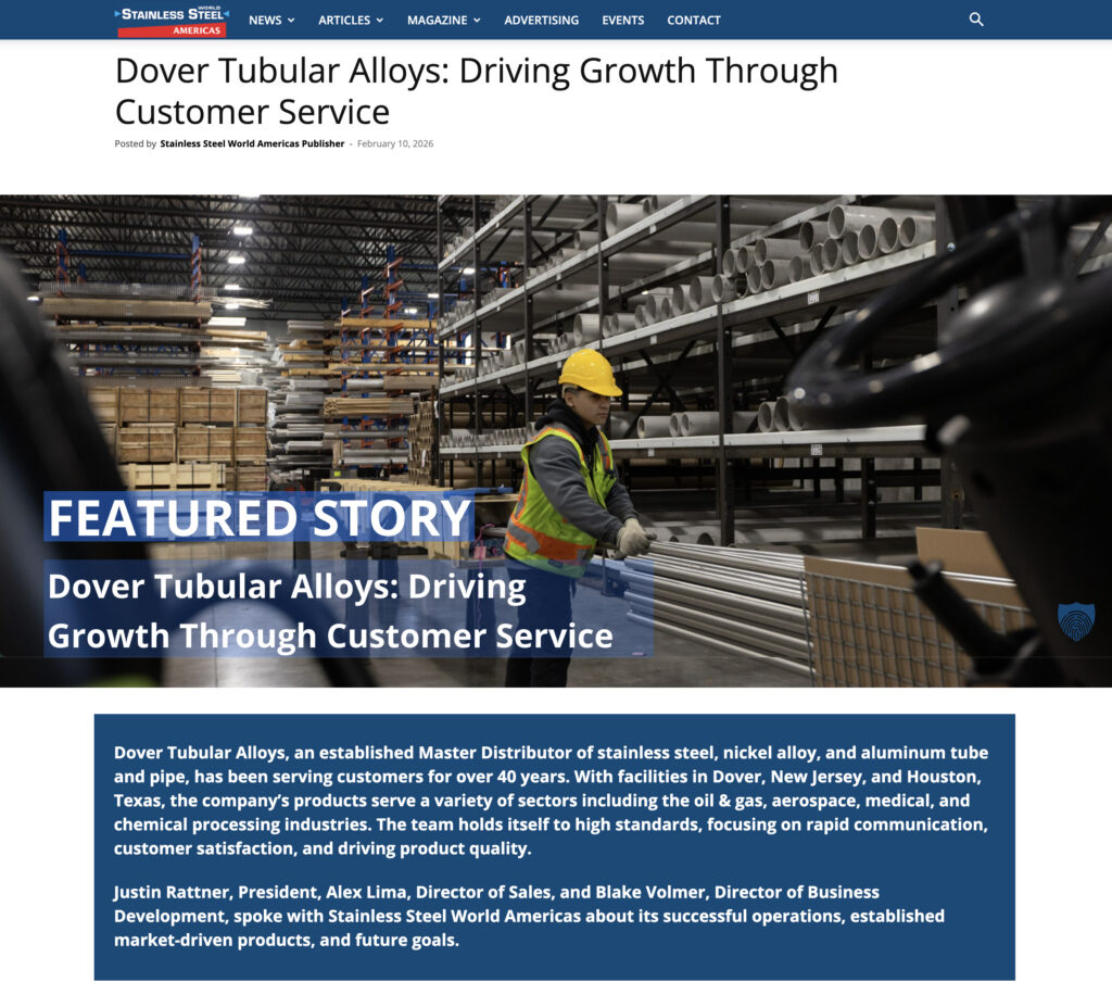Please click on the button below to read the complete article about Dover Tubular Alloys.